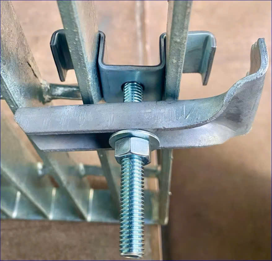 - Thiết kế thông minh: Móc kẹp được tính toán để ôm khít các loại bước sợi của tấm sàn grating phổ biến hiện nay, đảm bảo không bị trượt hay lỏng lẻo.